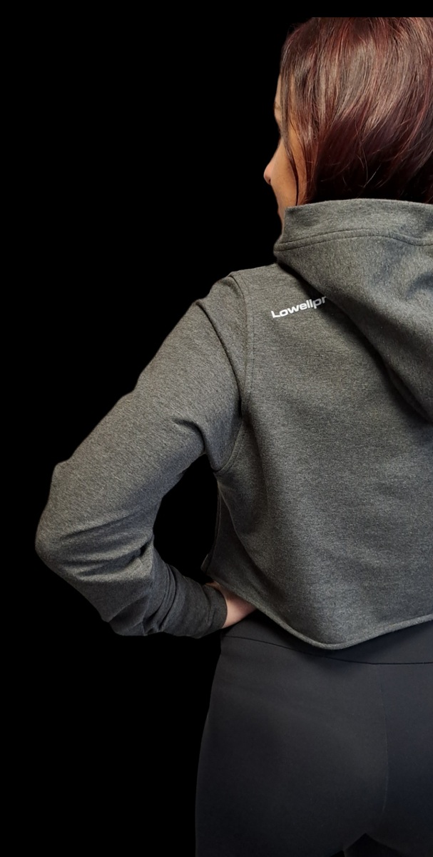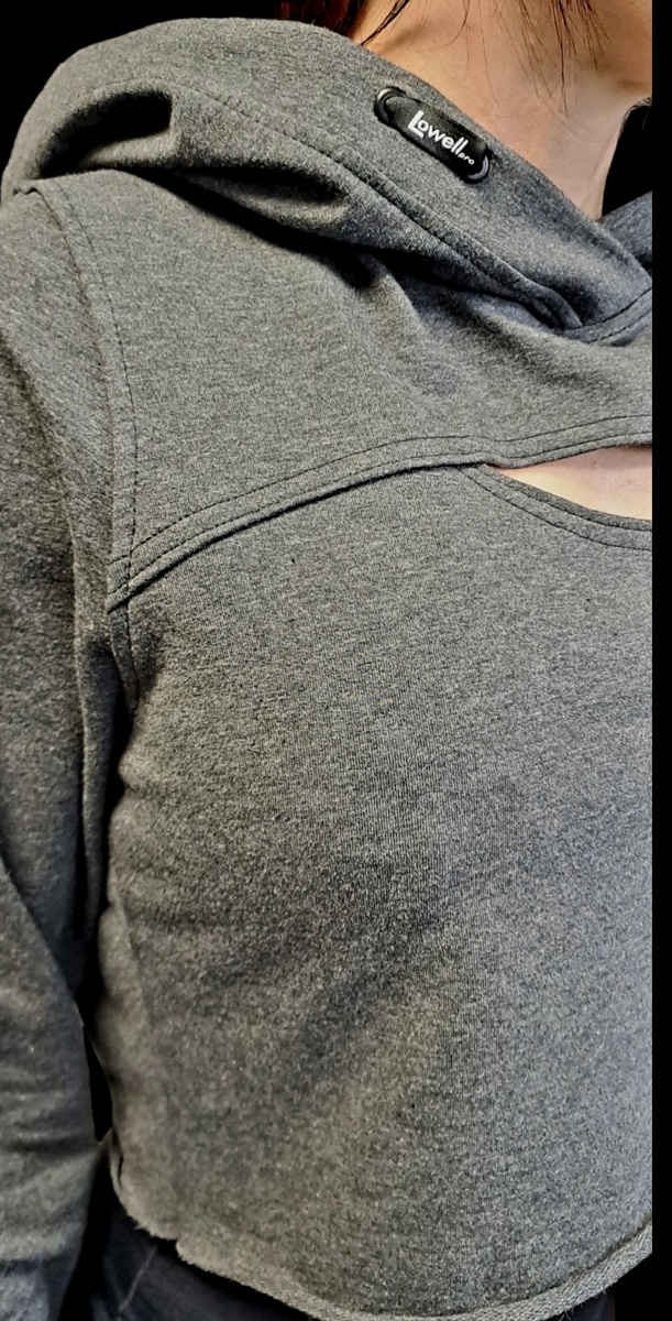 Crop s dlouhým rukávem , kapucí a prostřihem na hrudi